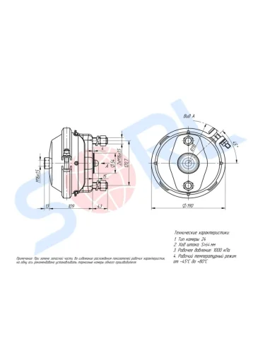 Камера тормоза КАМАЗ-5490 тип 24 переднего SORL SORL 35190109780 в Егорьевске Московской области