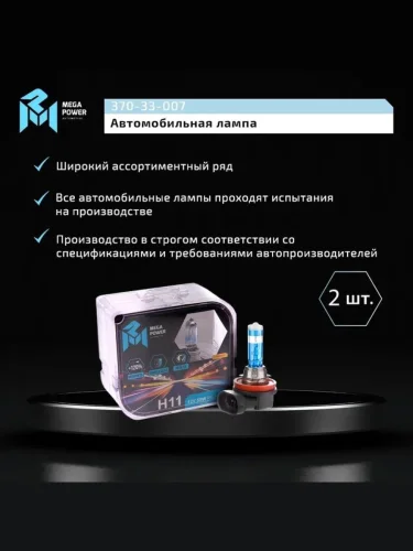 | Наименование | Лампа 12V H11 55W PGJ19-2 +120% бокс (2шт.) MEGAPOWER MEGAPOWER 370-33-007 в Егорьевске Московской области |