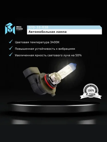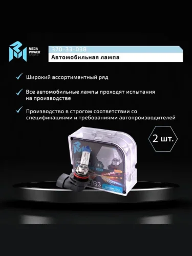 Лампа 12V HB3 65W P20d +50% бокс (2шт.) MEGAPOWER MEGAPOWER 370-33-038 в Егорьевске Московской области